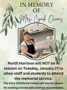 Remember school will not be in session, Tuesday, January 28th, to allow staff and students to attend the memorial service. The ECC will also be closed. All evening activities remain the same.