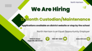 The North Harrison R-III School District is accepting applications for an immediate Custodian/Maintenance position. This is a 12-month position. Call (660)867-5222 for more information. Applications can be found on the school website at www.nhr3.net. North Harrison R-III School District is an Equal Opportunity Employer.