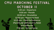 The marching band travels to Fayette, Saturday, October 11th to participate in the CMU Marching Festival.